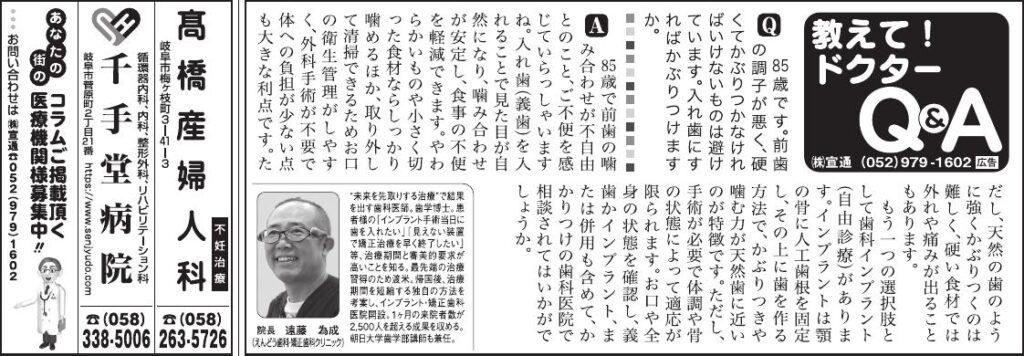 中日新聞コラム2025年8月26日掲載「入れ歯にすればかぶりつけますか?」